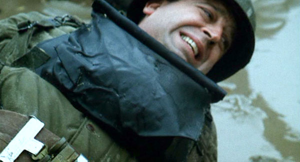 Sergeant Horvath and the other Rangers are seen removing their gas mask bags as soon as they reach relative safety. Although history records that the Germans (fearing Allied retaliation) did not use gas, one wonders if they were wise to discard them so early on? The extra weight and bulk of the bag and mask were probably more than most soldiers wished to carry, however there is photographic evidence of soldiers still wearing their M7 bags days after D-Day.